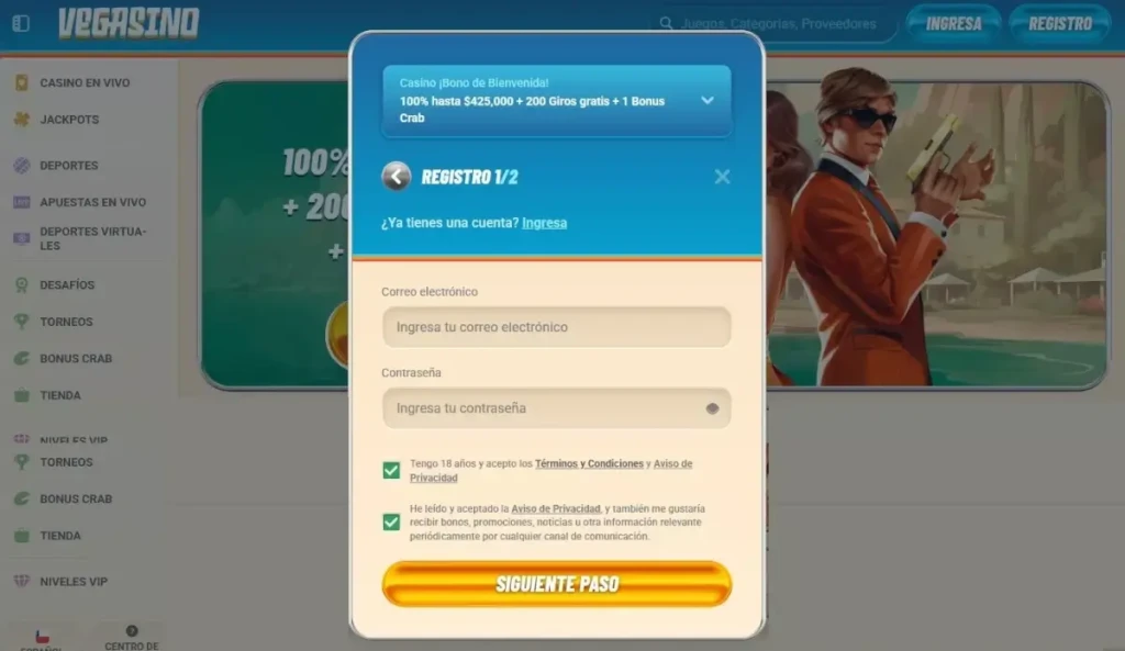 Pour vous inscrire sur Vegasino, suivez ces étapes simples en moins de 5 minutes :